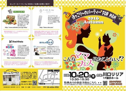 14日水曜日、ほっこり~のでは「お産を語る会」、を実施。 イベント班は、リトルママフェスタに参加して参りました! 我々は、ワンコイン首肩ほぐしで出展 当会スクールで学んでくださったママたちが サマパに次いでまたまた大活躍~ お子様はワタシが子守…